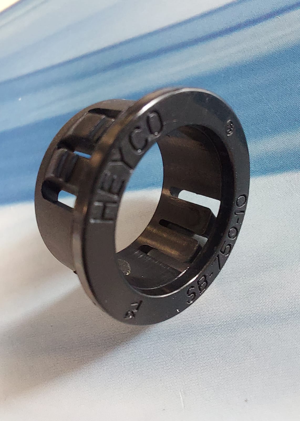 Poliamidowy przepust kablowy do otworu o średnicy ok. 20 mm 202024 (Heyco 2096) to funkcjonalne i estetyczne rozwiązanie służące do ochrony przewodów przed uszkodzeniami mechanicznymi na ostrych krawędziach otworów montażowych. Wykonany z trwałego i samogasnącego poliamidu PA 6,6, zapewnia wysoką odporność na wyrwanie oraz pełną zgodność z normami branżowymi, takimi jak RoHS czy UL 94V-2.